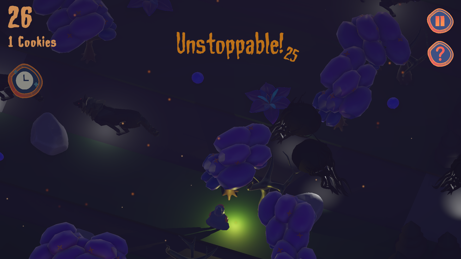 Time bends in your final moments — giving you a fragile chance to dodge death. You can either slow down time and dodge around some wolves or use the power to give yourself a second chance to live teleport back.